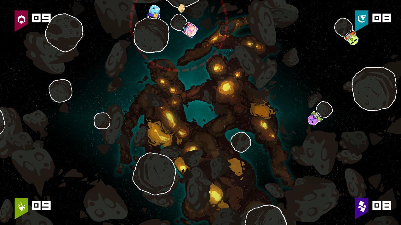 Sons of Eye Championship на данный момент представляет собой локальную многопользовательскую игру, в которой почти все против всех, где вы и до 3 других игроки* сражаются в космосе, чтобы узнать, кто настоящий Сын Ока.