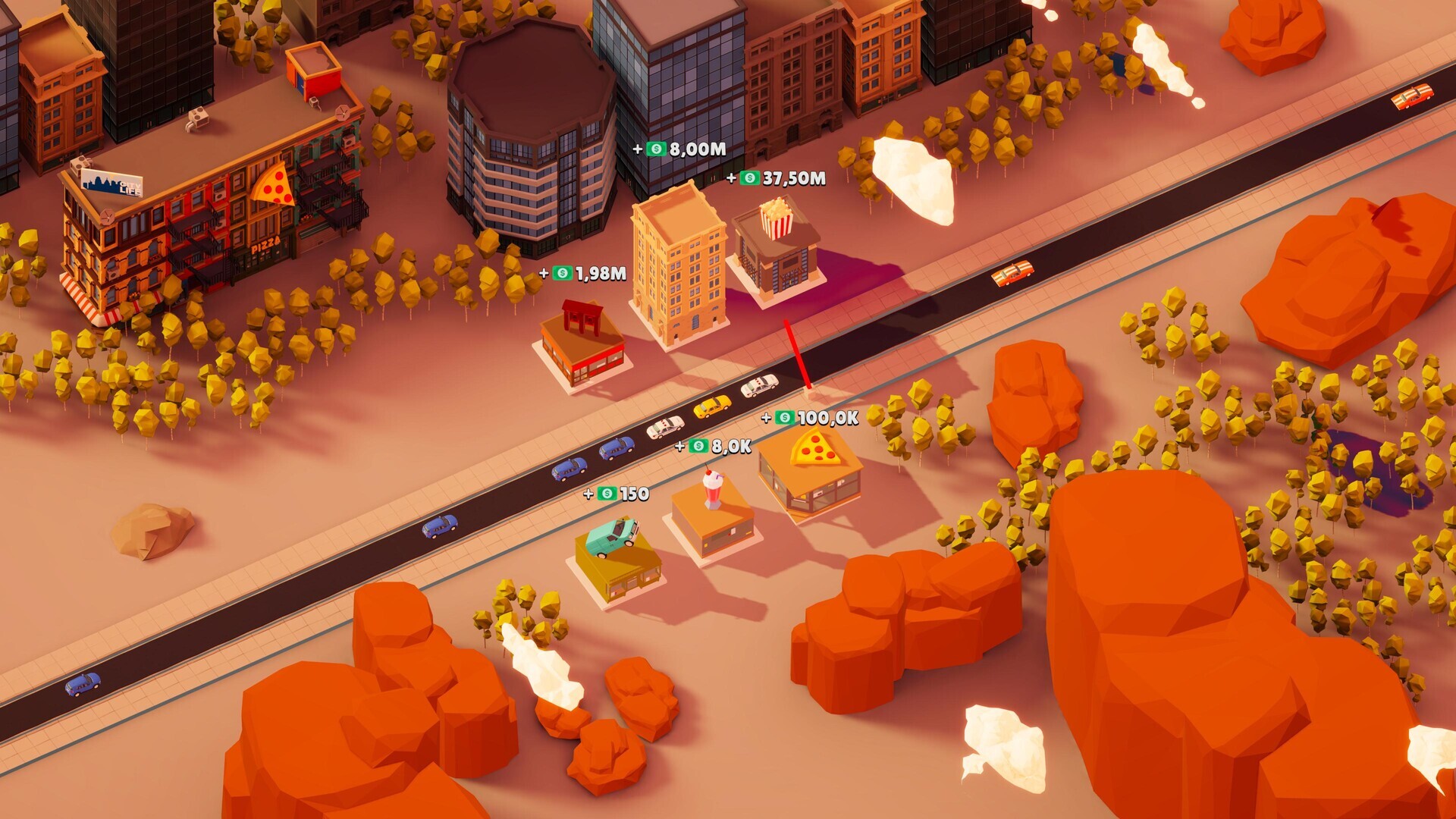 Открывайте новые предприятия — от скромного мини-маркета и пиццерии до заправочной станции, отеля или кинотеатра.