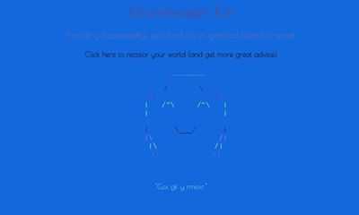 Посмотрите на цвета. Получите отличный совет на искаженном языке инопланетных рыб. Нажмите, чтобы сбросить цвета и получить дополнительные советы. Эта игра практически завершена. Возможно, позже я оживлю ASCII гроссмейстера. *ПРИМЕЧАНИЕ* поскольку цвета выбираются случайным образом, текст иногда не читается. Извините.