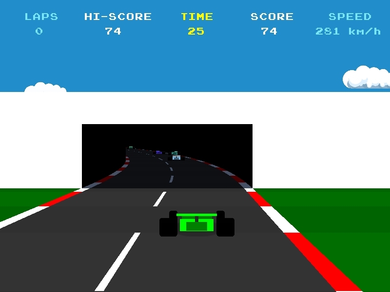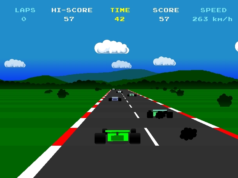 Grand Prix — это гоночная игра, вдохновленная Pole Position и другими гоночными играми прошлого века. В этих играх используется не полная 3D-система, а фиксированный вид вперед на трассе, который достигается с помощью 2D-игровых техник, как объяснено и проиллюстрировано на псевдо3D-странице Лу.
