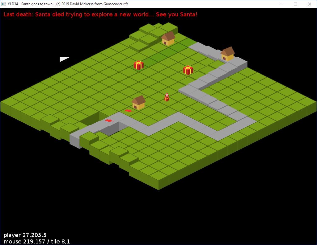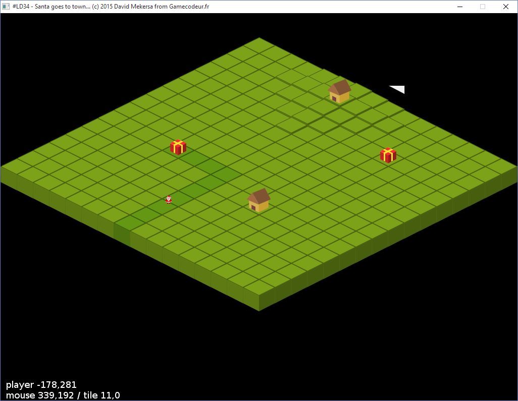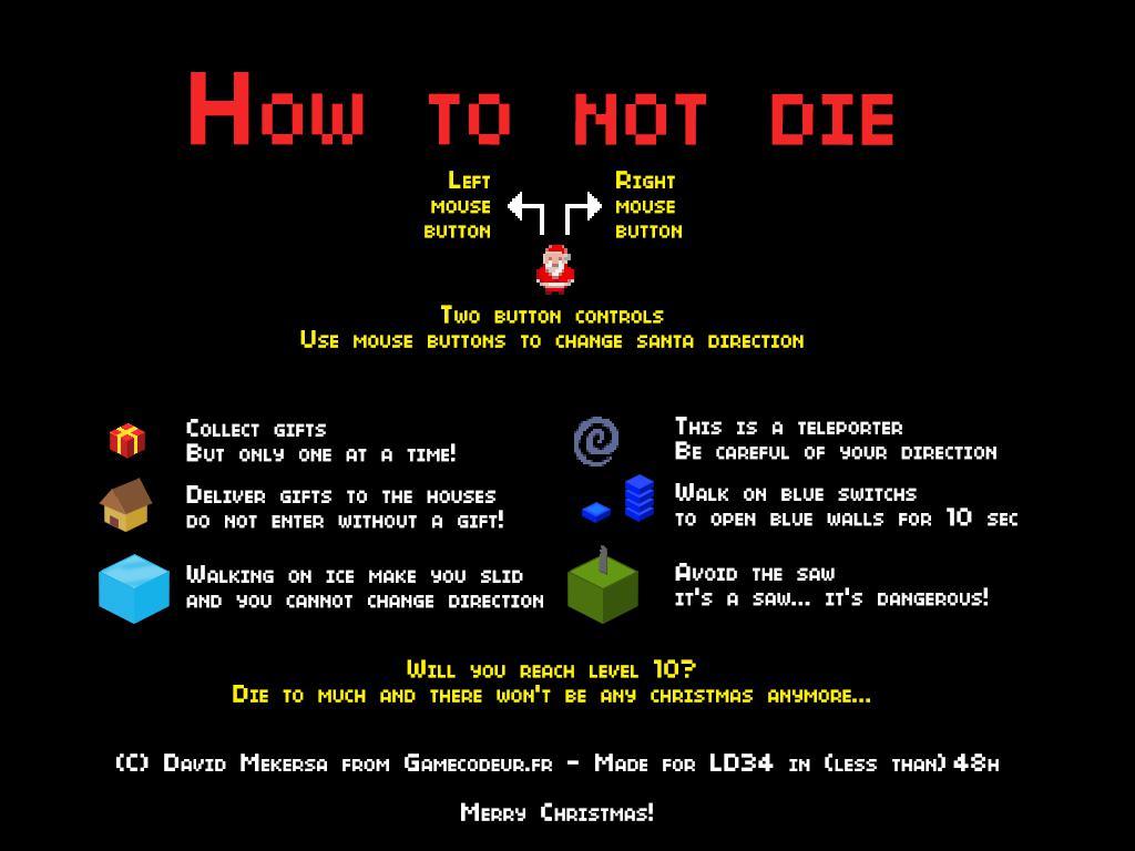 Управляйте Сантой с помощью двух кнопок мыши, как машиной на пульте управления: левая кнопка мыши, направление Санты будет вращаться влево, правая кнопка мыши, направление Санты будет поворачиваться вправо...