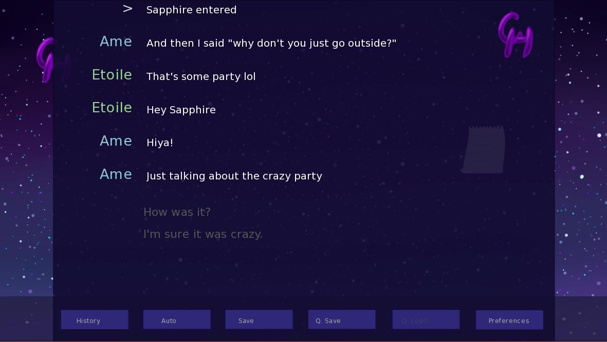Когда объявили тему, я был очень счастлив. Как художник, я всегда сосредотачивался на художественном стиле и дизайне персонажей больше, чем должен был в своих прошлых записях LD. Но с этим я хотел сделать что-то другое, что-то, чего я не делал раньше. Итак, я сделал визуальную новеллу с одним изображением, которое было фоном рабочего стола. Установив игру в чате (отсюда и «одна комната»), я сильно ограничивал себя в необходимости рассказывать интересную историю через тексты. Я вижу эту запись как вызов себе стать лучшим писателем и исследовать больше способов написания визуальных новелл. Надеюсь, вам понравится!