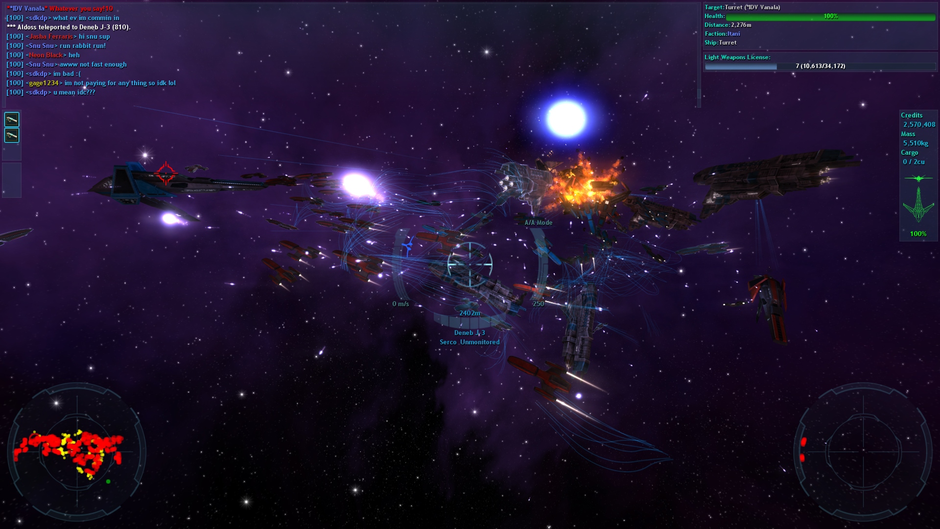 Быстрая боевая модель в реальном времени с ньютоновской физикой обеспечивает интенсивное действие в сочетании с ролевым игровым процессом в огромной сетевой галактике.