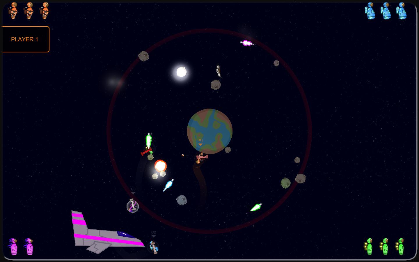 Перемещайтесь с планеты на планету, совершая ракетные прыжки, уничтожая других астронавтов ракетами, стреляя из пушек, пламя реактивного двигателя или разрезая их космическим тесаком. Rocketnauts — это локальная многопользовательская игра, рассчитанная на 1–4 игроков. Сразитесь со своими друзьями или сразитесь с ИИ, чтобы увидеть, кто переживет другого.