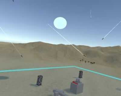 Trigger запускает ракету в цель над контроллером . Вы можете нажать сенсорную панель на контроллере, чтобы расширить целевую точку наружу.