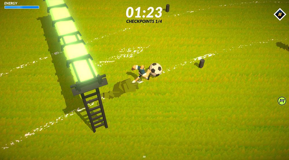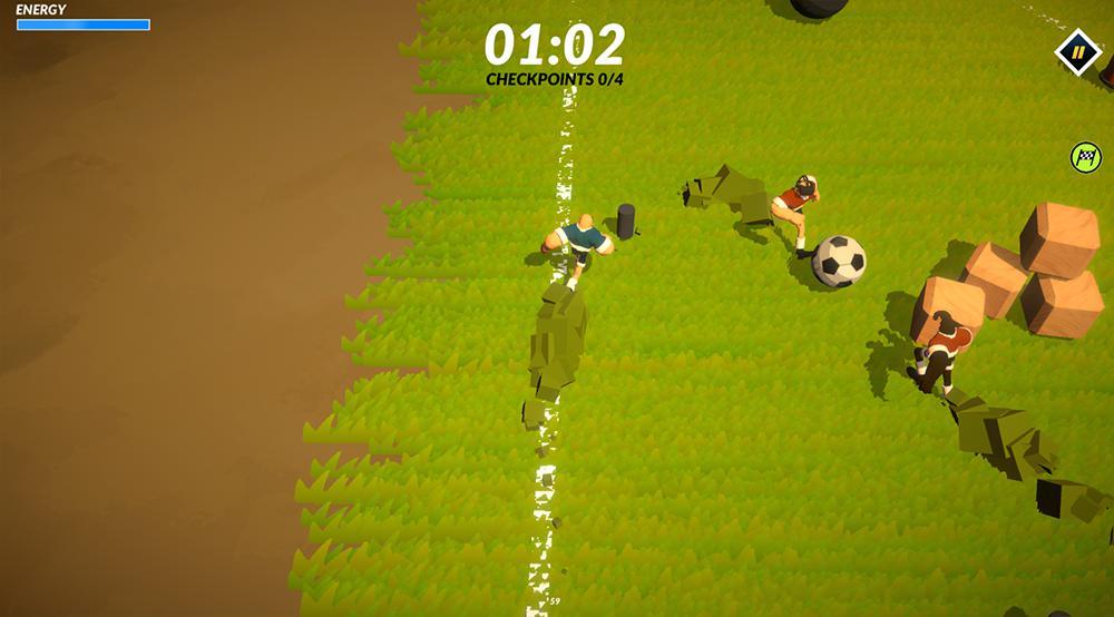 Хватайте мяч, проходите все контрольные точки, избегая при этом команду противника, и идите к воротам!
