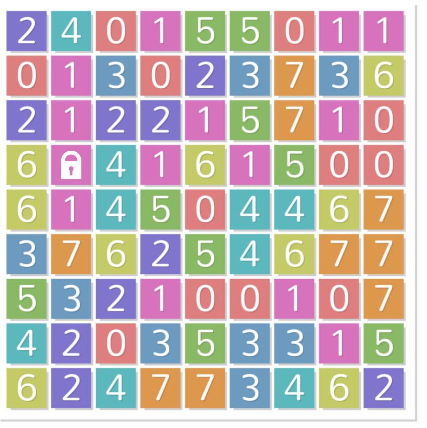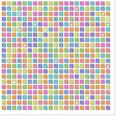 Плиточная доска пронумерованных цветов. Каждая плитка должна иметь одинаковый номер или быть на единицу выше или ниже соседних чисел. Не все плитки принимают все числа, поэтому вам необходимо тщательно планировать и выбирать стратегию, которая не заставит вас отступать и тратить ценные очки.