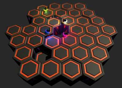 Управляйте светящимся бамперным автомобилем на воздушной подушке по быстро меняющемуся шестиугольному игровому полю и одержите победу последним!