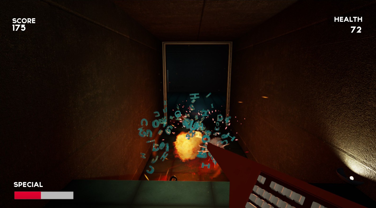 У вас есть оружие, которым можно убить буквы; но он сработает только при нажатии соответствующей клавиши на клавиатуре.