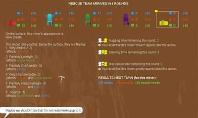 Undermined – это игра, в которой вам предстоит утешать шахтеров, оказавшихся в ловушке после обвала. Разговаривая со своими шахтерами и знакомясь с ними, вы узнаете о чувствах, которые они испытывают под землей, и поможете им преодолеть эти чувства.