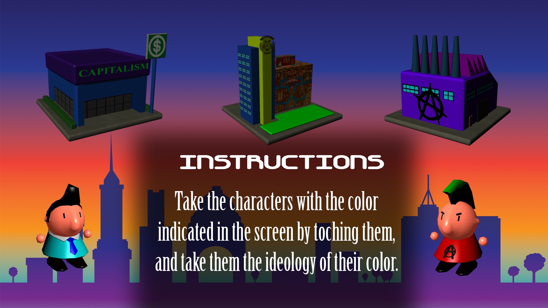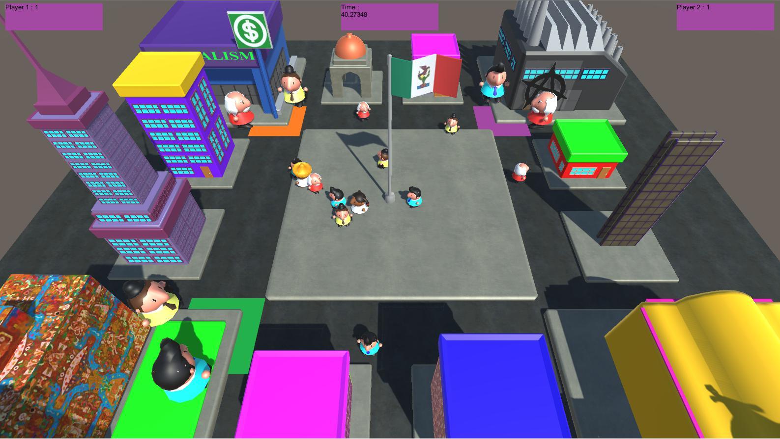 Мы создаем видеоигру под названием Ideology Warefare, основная цель которой состоит в том, чтобы узнать о различных мнениях и позициях, которые могут быть религиозные, политические и экономические склонности и то, как эти различия могут быть использованы для нашего собственного блага или зла. Ideology Warefare — это многопользовательская игра для вечеринок, основной скин которой находится в Мехико. Начинается с группы людей, которая внезапно появляется в каком-то месте, эта толпа рассеивается и один персонаж должен пригласить адептов, главная цель - прикоснуться к аватару, приглашая его принять участие в нашей идеологической позиции, представленной банком, церковью, школа и ткань. Это можно сделать, просто прикоснувшись к нему и вернувшись к соответствующему месту встречи.