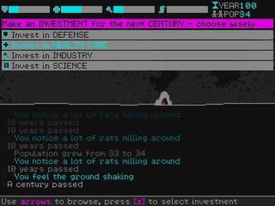 По прошествии столетия используйте подсказки, которые вы замечали каждое десятилетие, чтобы сделать наилучшие инвестиции в столетие вперед (в одном из обороны, здравоохранения, промышленности или науки). Если ваш прогноз оказался верным, ваше население будет защищено от неизбежных катастроф, которые случаются каждые 100 лет.