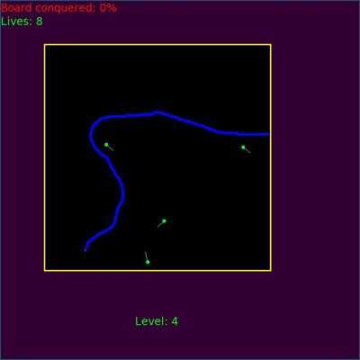 Всякий раз, когда вы завершаете линию, каждая область, не содержащая мяча, убирается с доски. Если вы захватываете более 75% доски, вы переходите на следующий уровень, на котором есть дополнительный мяч.