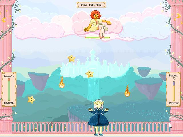 Luna and the Falling Stars — это простая игра в жанре "лови и стреляй". Используйте клавиши со стрелками для перемещения и пробел, чтобы начать атаку. Избегайте огненных шаров и молнии. Собирайте звезды, чтобы иметь достаточно силы (5 звезд), чтобы открыть ответный огонь и победить Солей. Меньшие звезды встречаются реже и приносят больше очков!