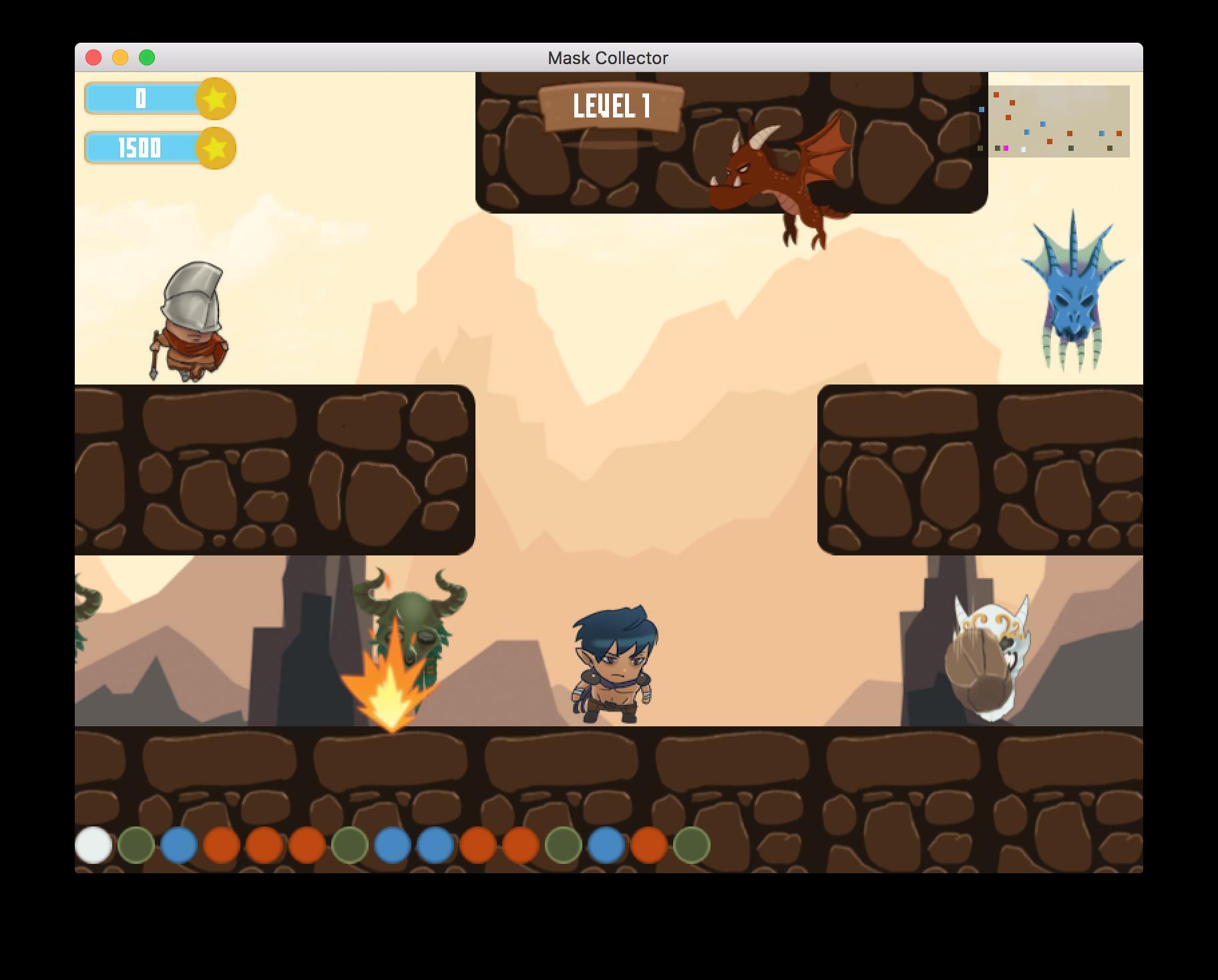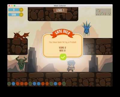 2D-платформер, в котором вам нужно последовательно собирать маски, находить ключ и открывать дверь в