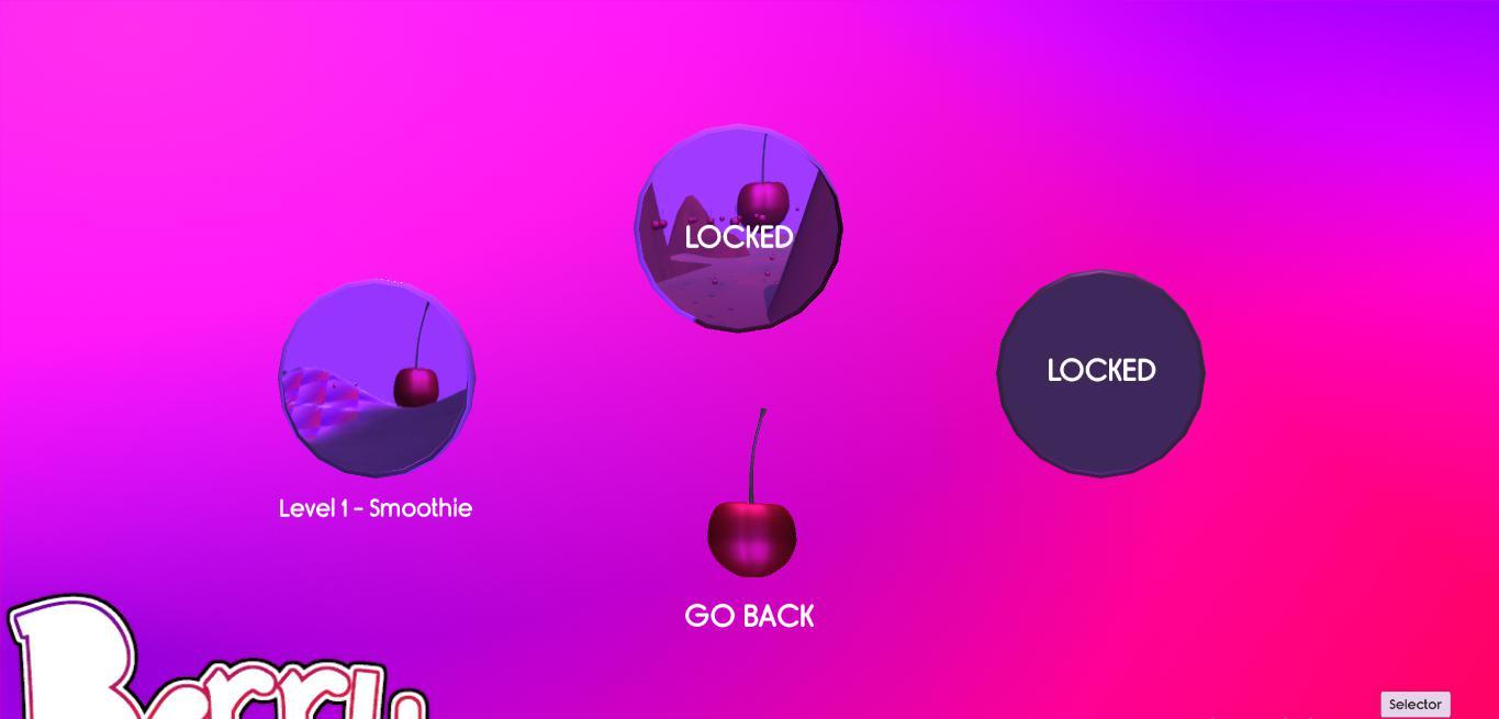 Berry — это сюжетная игра, в которой вы играете за маленького Джеймса. Он собирает разные ягоды, и если каких-либо ягод ему становится достаточно, он превращается в «мистера Берри» с этим вкусом. Мистер Беррис — это сверхмощные персонажи маленького Джеймса, его ягодные формы. Общая история о том, почему маленький Джеймс путешествует по своему миру и по мирам ягод, чтобы собрать формы мистера Берри, все еще находится в стадии разработки, но именно те виды ягод, которые он прозвал, дразнили детей. В основном я работал над созданием основы для моей будущей игры о спидстере с помощью первого мистера Берри, которого можно разблокировать в игре, «Мистера Черри Берри», который при использовании обладает сверхскоростью. Я хотел создать систему обучения для этой игры, которая научит вас, как использовать любого нового мистера Берри, которого вы разблокируете, с минимальным использованием письменных или графических инструкций.