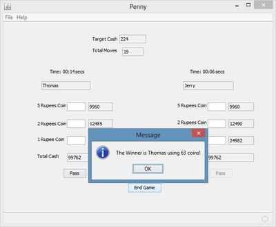 Penny — это простая Java-игра с индийскими монетами (в основном номиналом 5, 2 и 1 рупий), требующая внимательного и хитрого ума. После распаковки вы получите папку «dist», в которой находится файл игры «Penny.jar». Внутри файла rar находится файл «Penny Details.doc», который содержит все правила и процедуры его воспроизведения. Если у вас возникнут какие-либо проблемы с загрузкой или воспроизведением, вы можете связаться со мной по моей почте: ngnilu3@gmail.com
