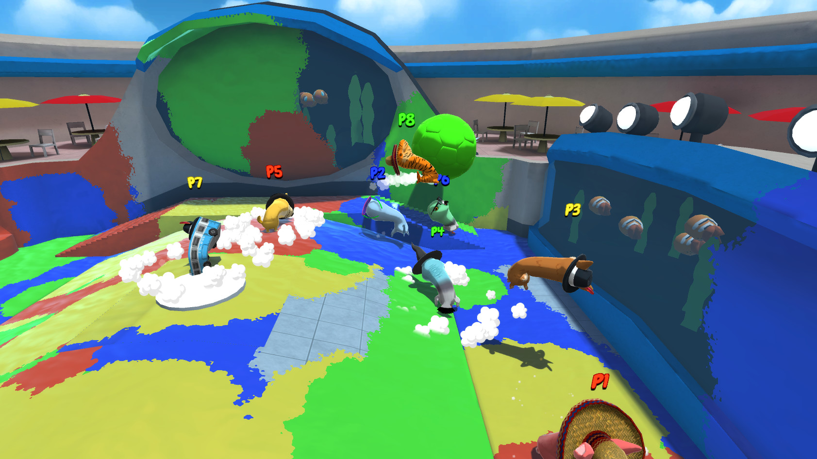 Устраиваете вечеринку? Идеально! До 8 игроков могут соревноваться или играть вместе в Free Play! Как бы вы ни играли, вы разблокируете множество настроек персонажей, скинов и головных уборов.