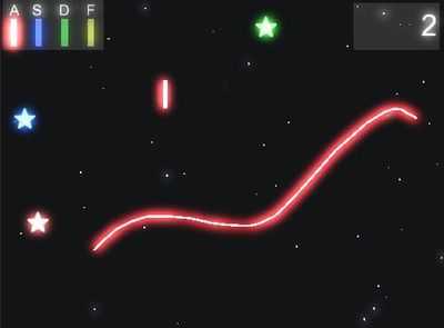 Управление: используйте светящуюся палочку, чтобы рисовать в воздухе и ловить падающие звезды, но избегайте других цветов. Используйте ASDF или щелкайте по светящимся палочкам в верхнем левом углу, чтобы изменить цвет.