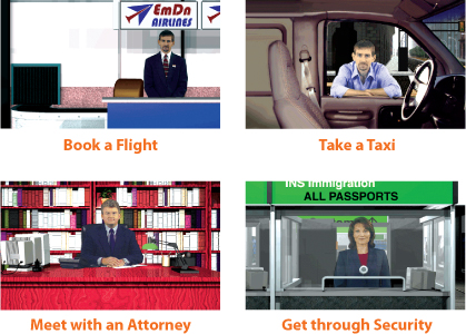Общайтесь с персонажами в реальных сценариях, основанных на самых распространенных ситуациях в путешествиях.