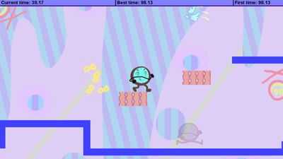Работали с командой из 5 человек и прошли игру за 32 часа. Я отвечал за физический движок, дизайн уровней, реализацию повторов, а также дизайн и разработку усилений.