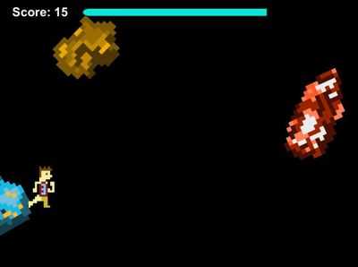 Каждый раз, когда игрок прыгает, он теряет очки прыжка! Когда очки прыжка станут равными нулю, игрок упадет и умрет. Стреляйте в метеор, чтобы набрать больше очков для прыжков!