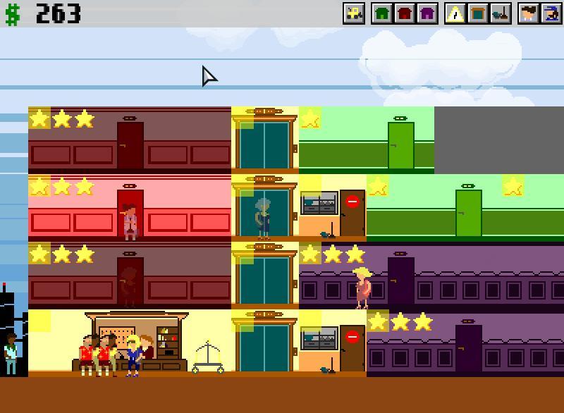 Управляйте своим отелем: от одноэтажного здания до самого большого небоскреба в городе. Эта игра была создана командой из трех человек за 48 часов в декабре 2016 года.