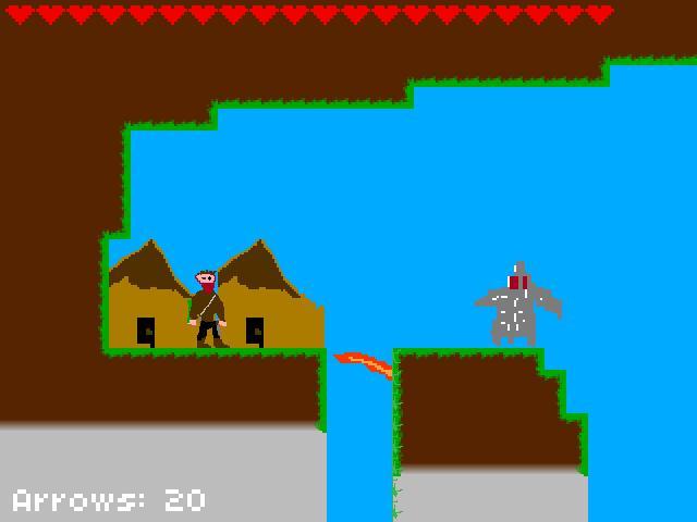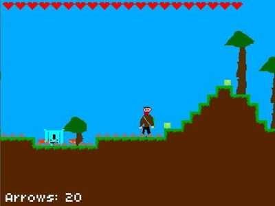 Используйте клавиши со стрелками, чтобы двигаться и прыгать, пригнувшись, вы также блокируете щитом. По лианам на стенах можно лазить. Нажмите пробел, чтобы выстрелить из лазерного бластера, или C, чтобы выстрелить из лука и стрел. Будь осторожен! У вас есть ограниченное количество стрел. Вы можете найти больше стрел в сундуках.