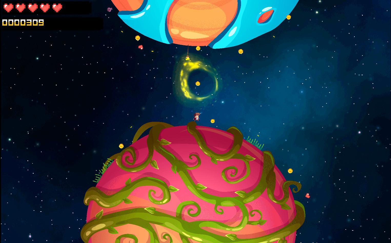 Прыгайте через гравитационные разломы, чтобы путешествовать с одной планеты на другую.