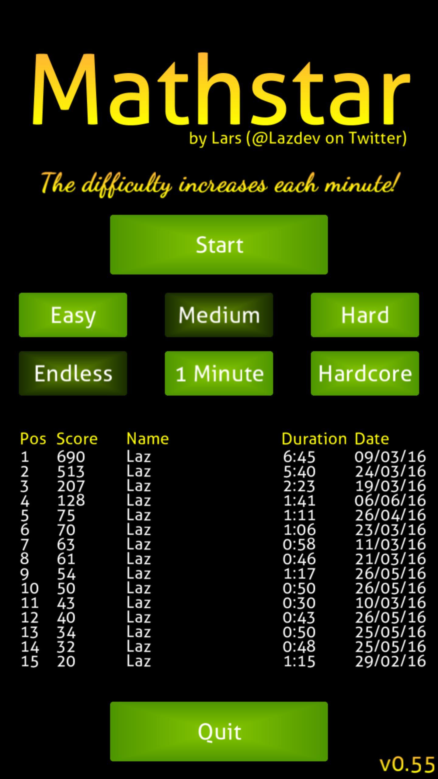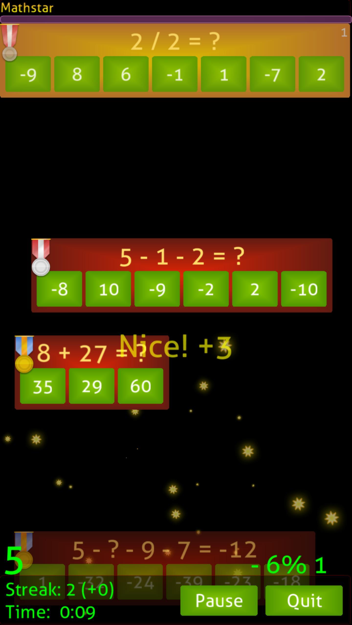 Наслаждайтесь Mathstar, динамичной математической игрой с 3 режимами игры и 3 уровнями сложности!