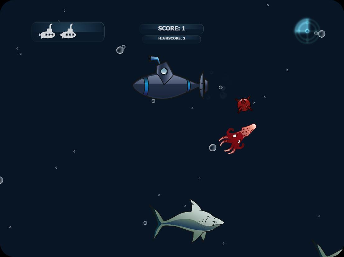 Инструкция: используйте стрелки, чтобы переместить подводную лодку.
