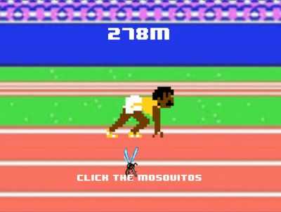 В этой игре вы четвертый участник эстафеты из четырех человек, и сначала вам нужно коснуться (или щелкнуть) всех комаров, которые приближаются к вам, чтобы не умри до своей очереди. Когда счетчик наверху опустится ниже 10 м, вам нужно коснуться/щелкнуть гонщика или нажать пробел, чтобы встать и начать гонку. Когда гонка начнется, нажмите Z и X, чтобы бежать быстрее.