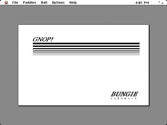 GNOP! Flash был создан Стивом Ричи и является ремейком оригинального GNOP!, выпущенного в 1990 году и созданного Александром Серопяном. Существование этой программы ни в коем случае не следует рассматривать как одобрение Александра Серопяна или Bungie.