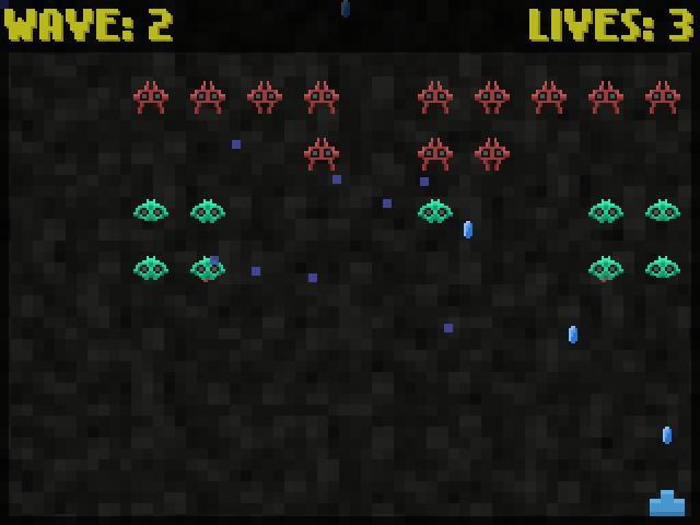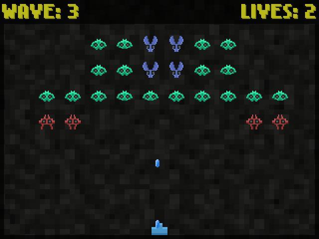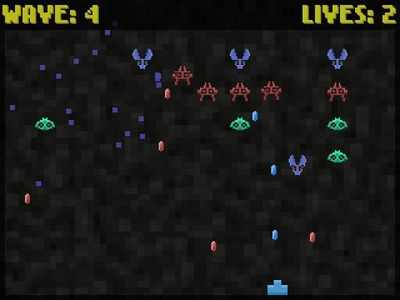Дизайн этого шутера был вдохновлен классическими Space Invaders. Как и в других моих флеш-играх, я использовал Flixel в качестве основы и Gimp для подготовки графики. В нее можно играть, и даже вы можете попытаться пройти ее, пробив 100 волн врагов. Есть 10 видов захватчиков, каждый с разным поведением. Каждые 5 уровней вы получаете дополнительную жизнь, что очень полезно. Музыка Кевина МакЛауда очень хорошо подходит к действию.