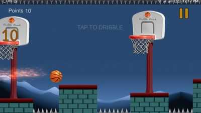 Нажимайте на экран, чтобы вести мяч в сторону кольца, избегая при этом шипов, которые могут замочить