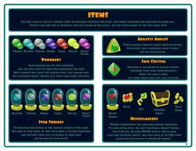 - отыщите 6 видов оружия и 3 особых способностей, которые могут помочь Вам в сражении с врагами