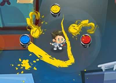 Нажмите и перетащите мышь, чтобы нарисовать линии на врагах. Используйте банку с краской, чтобы добавить цвета на кисть. Используйте правильный цвет, чтобы победить каждого врага.