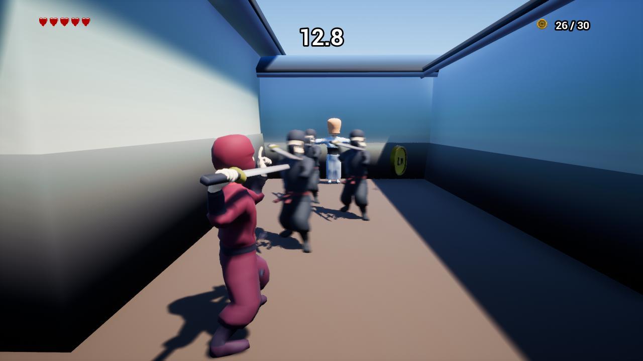 Ваша задача — собрать 20 монет за 30 секунд, найти все секретные монеты, убить всех ниндзя и спасти заложников. Есть ли у вас все необходимое, чтобы стать величайшим ниндзя?