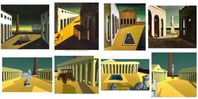 Я хочу, чтобы вы прогулялись по жуткому сказочному пейзажу, который Де Кирико представляет в своей серии сюрреалистических картин городской площади.