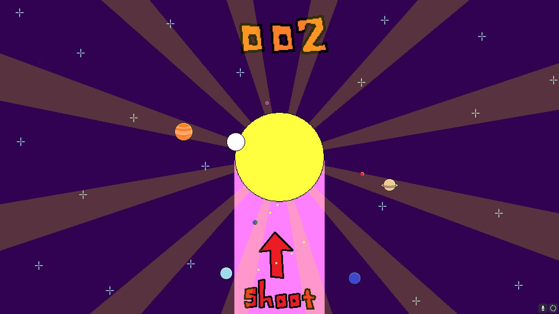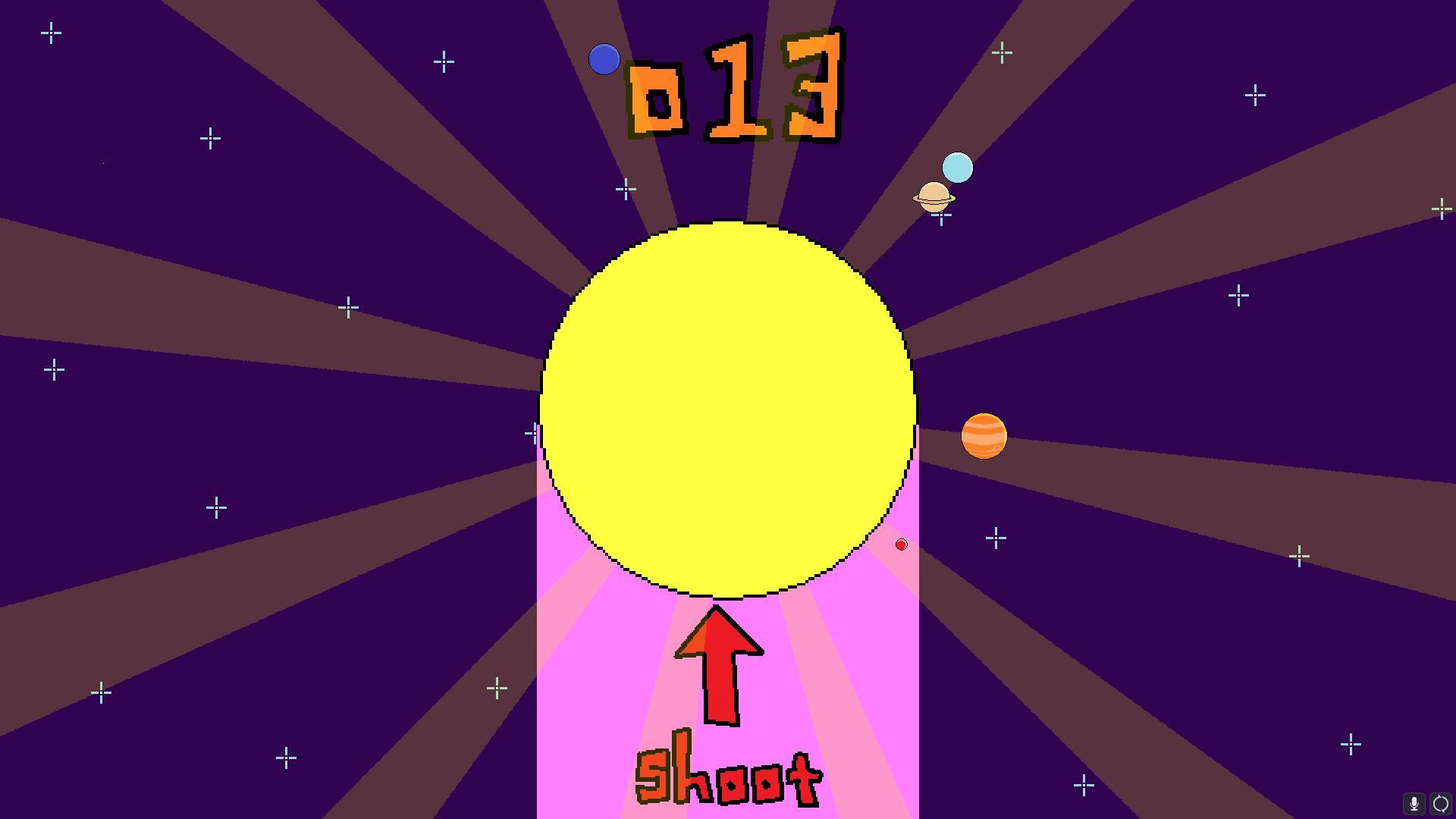 Элементы управления просты (щелчок левой кнопкой мыши или пробел). Игрок должен стрелять нейтрализующими выстрелами в солнце, чтобы сдерживать его, когда оно пытается расшириться! Но есть одна загвоздка — планеты могут стрелять нейтрализаторами только находясь в розовом космическом огневом поясе.
