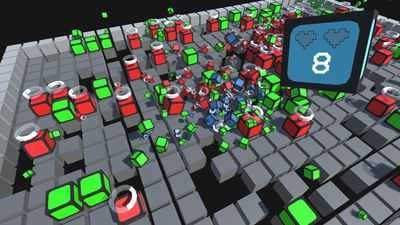 Вы будете случайным образом помещены на сеточную карту вместе с зелеными и красными кубами. Ваша цель — собрать зеленые. Красные на самом деле уничтожают вас и могут передвигаться так же, как и вы. Осторожно, сама карта со временем меняется!
