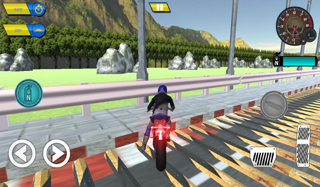 В этом симуляторе езды на велосипеде вам предстоит пройти 10 сложных уровней. Количество ударов будет увеличиваться на следующем уровне. 3 разных тяжелых велосипеда помогут вам преодолеть скоростные перерывы за минимальное время. Проходи уровни за отведенное время и мчись как можно быстрее.