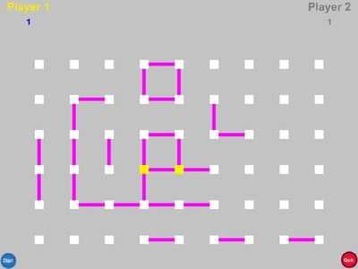 Соединяйте точки по очереди, чтобы составить линии, и постарайтесь набрать как можно больше ящиков! Заполнение коробки позволяет вам сделать еще один ход.