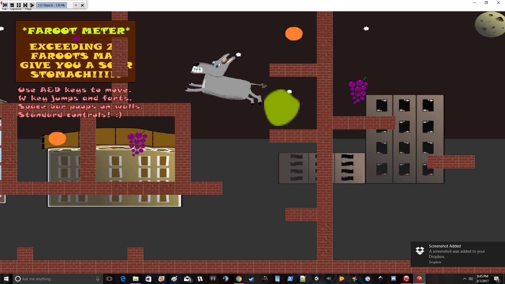 В этом игровом пердежном приложении звезды истерически пердежного осла. Эта игра находится на ранней стадии разработки. Пожертвования пойдут на приобретение большего количества музыки, а также на покупку компонентов для разработчика. На данный момент существует около 30 различных звуков пердежа, и все они настоящие. Недавно мы добавили третий уровень и сделали второй и третий уровни намного сложнее. Мы также добавили анимацию прыжков и пукания газа. Периодически будут добавляться новые уровни, содержащие все новые пердежные звуки. Конечная цель — создать отточенную платформенную игру, которая заставит вас смеяться до головокружения.