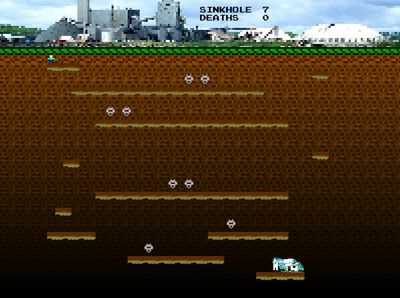 Ваш дом засосало провалом. Спуститесь по выступам, чтобы вернуться домой.