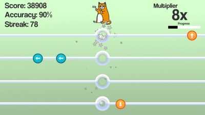 -Чтобы ударить по ноте, нажмите правильную кнопку, когда она пройдет через середину.