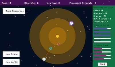 Нажимайте на планеты, которые вы создали, чтобы просмотреть их ресурсы и статистику жителей .
