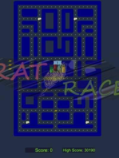 Вы управляете крысой в лабиринт. Крыса должна очистить лабиринт от кусочков сыра, пока ее преследуют агрессивные кошки. В каждом лабиринте есть большие куски сыра с добавлением гормона роста, который временно превращает крысу в суперкрысу, которая может преследовать и проглатывать кошек.