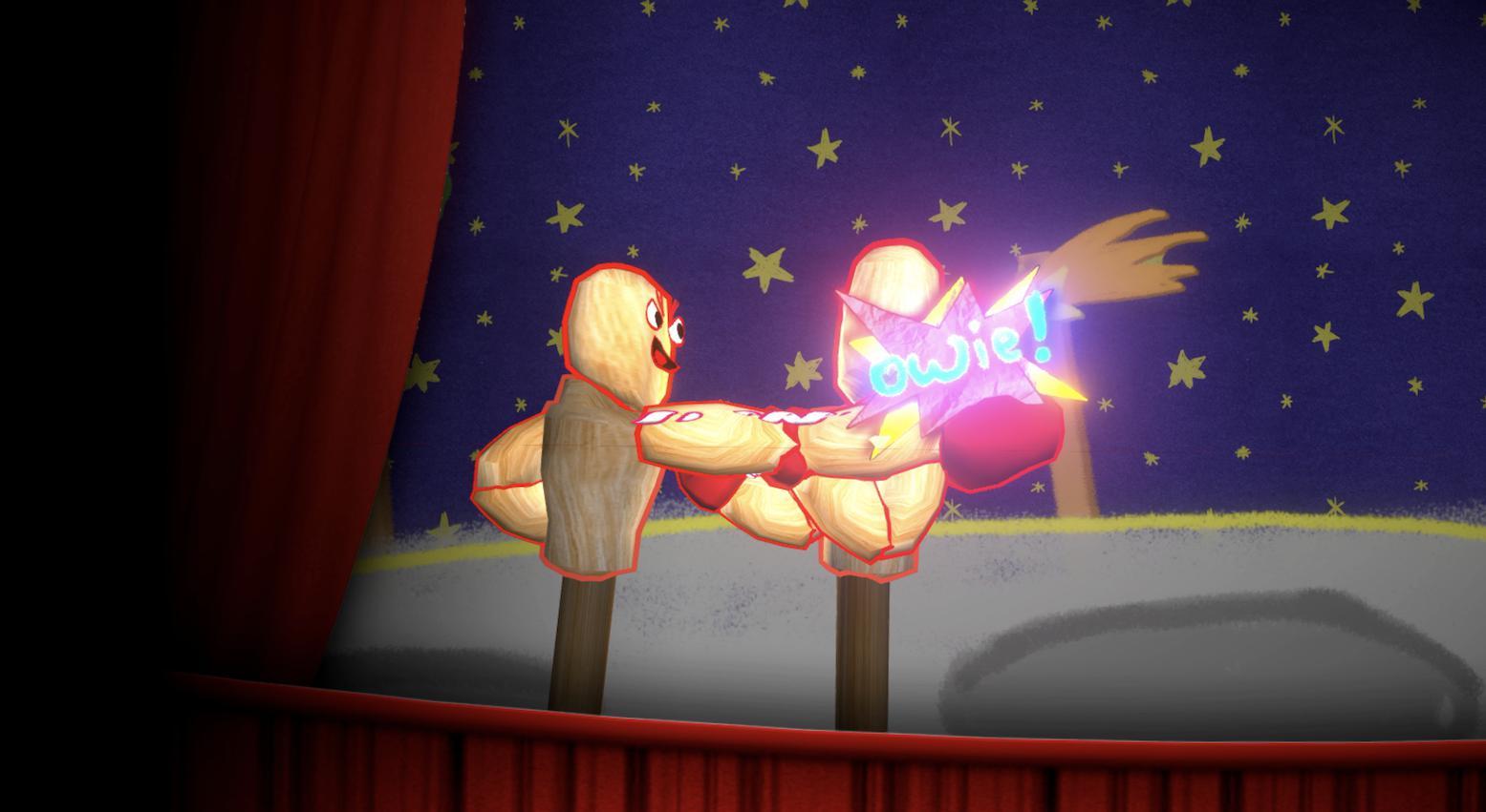 Наслаждайтесь этим детским представлением о боксе деревянных марионеток до тех пор, пока одна из них не будет нокаутирована, однако куклы, похоже, не реагируют на свои команды сразу после того, как их вставляют.