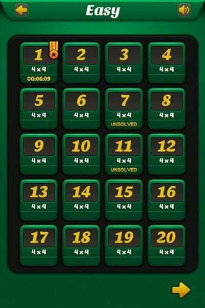 • Повышение сложности: несколько размеров сетки, от 4x4 до 15x9 — чем больше, тем сложнее.